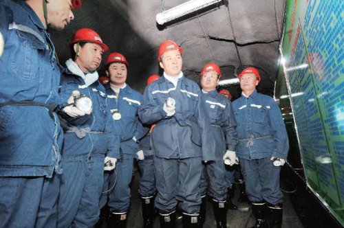 9月11 日上午,市委書記張憲軍在副市長郭杰及相關(guān)部門負(fù)責(zé)同志的陪同下,深入到我公司九井井下檢查煤礦安全生產(chǎn)工作。