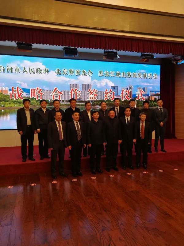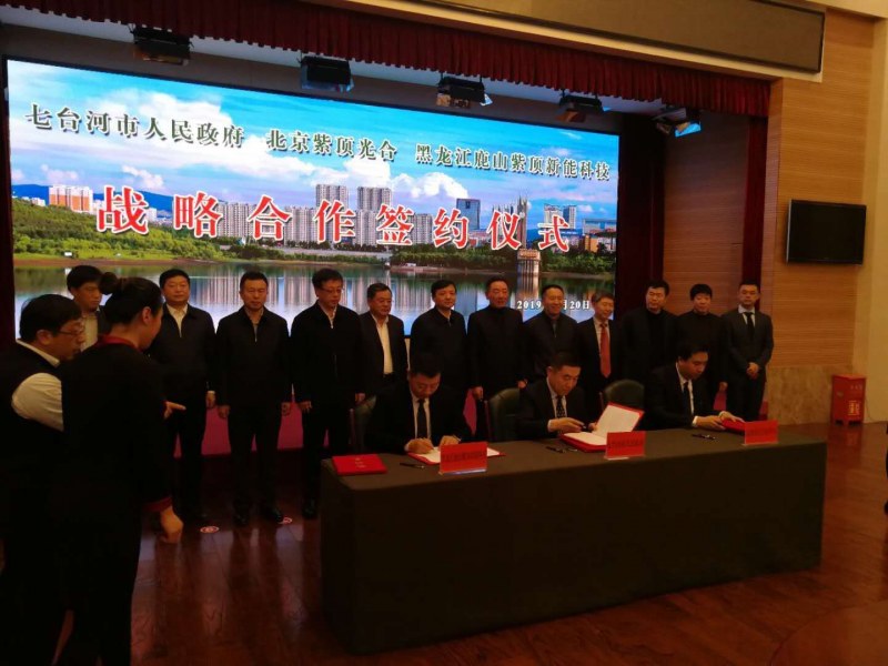 2019年1月20日上午,七臺河市人民政府、北京紫頂光合企業(yè)管理中心(有限合伙)、黑龍江鹿山紫頂新能科技有限公司簽約儀式在市專家接待中心舉行。市委書記楊廷雙,市委副書記、市長賈君,市委常委、秘書長蔣和慶,市政府副市長王義光,市政府秘書長陳志、鹿山集團(tuán)鐘金海等領(lǐng)導(dǎo)出席簽約儀式。市委常委、副市長安虎賁主持簽約儀式。